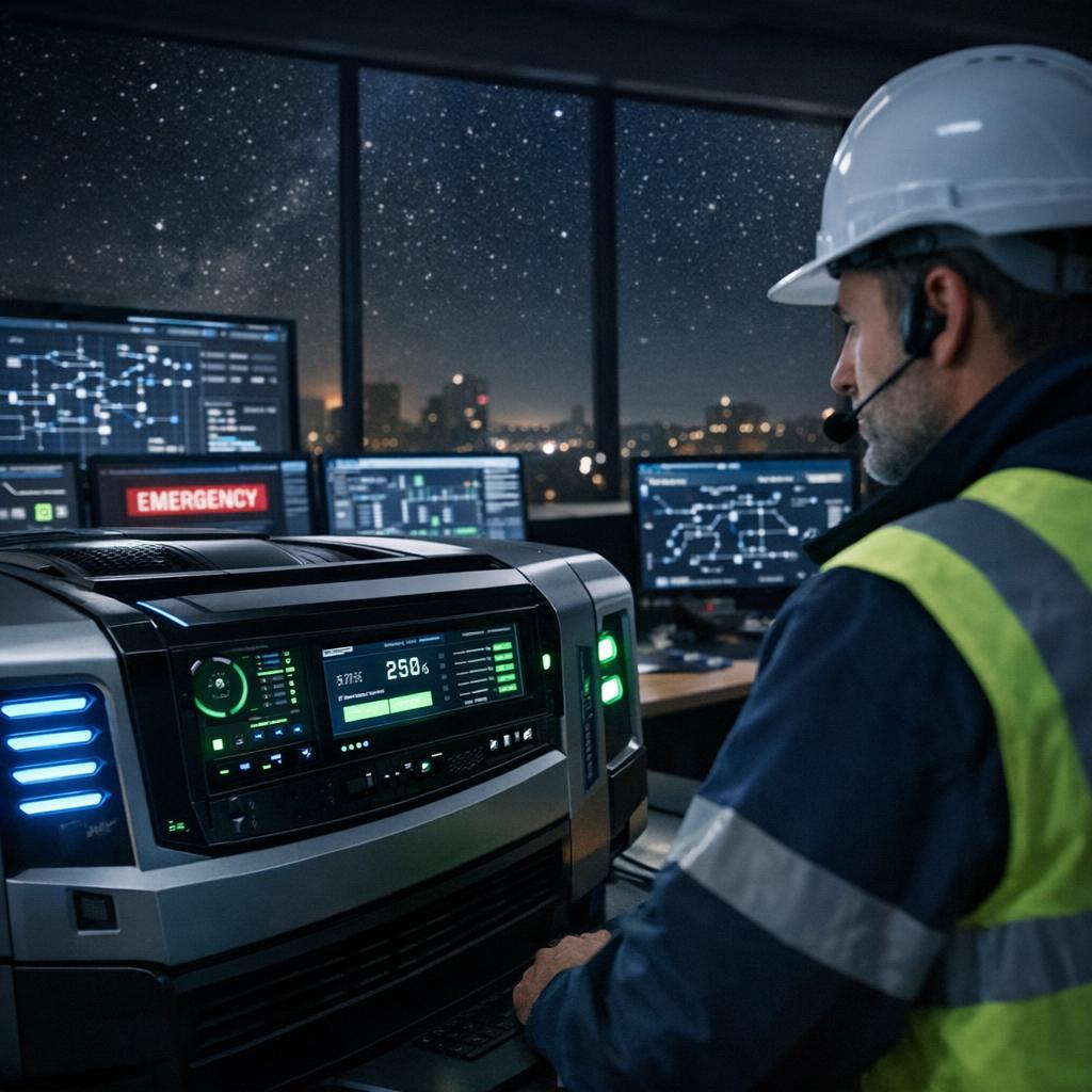 - Moderne Technik kombiniert Generatoren, Batterien und USV-Systeme für eine schnelle und stabile Energieversorgung.